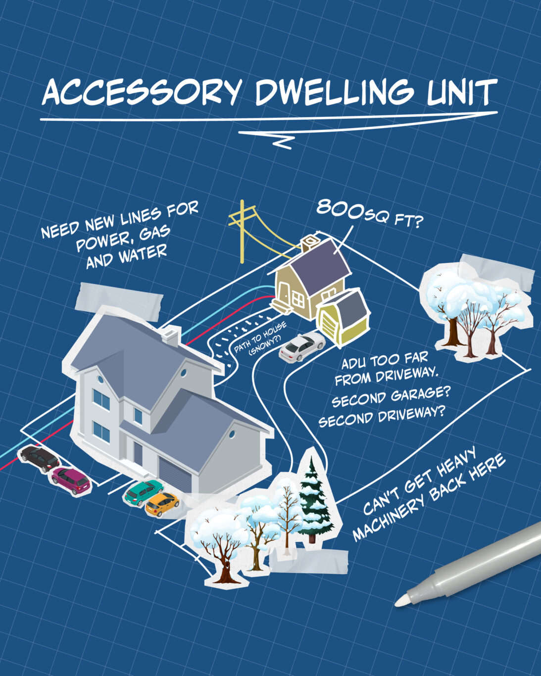 While creative design can solve some challenges, accessibility often becomes a deciding factor. For example, Tom considered adding an ADU above his detached garage to save space, but it introduces stairs, which could be a long-term hurdle for his father.