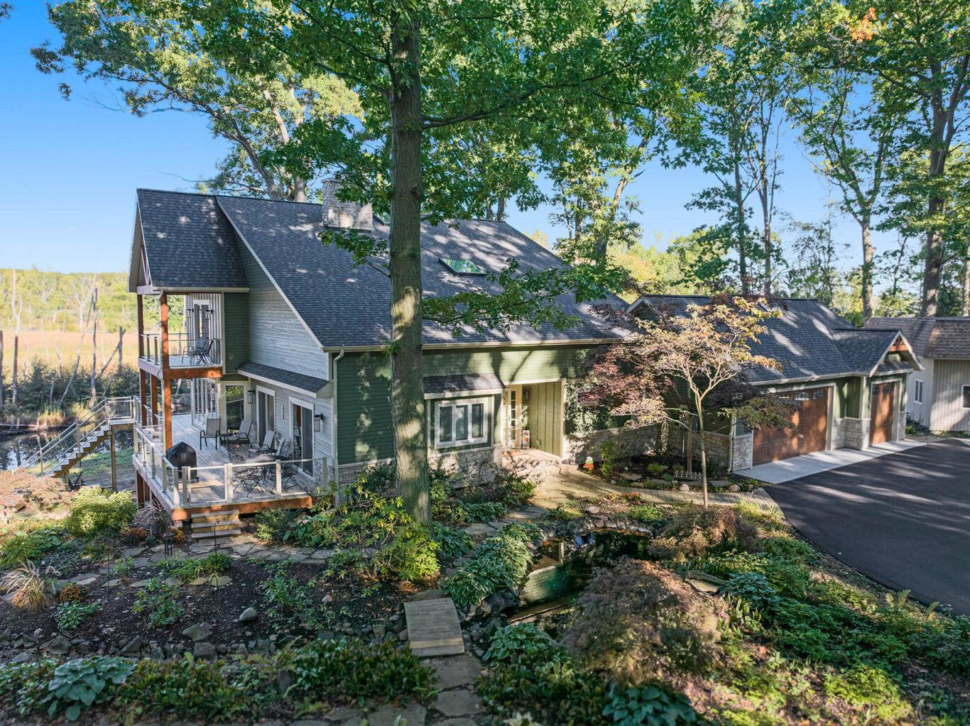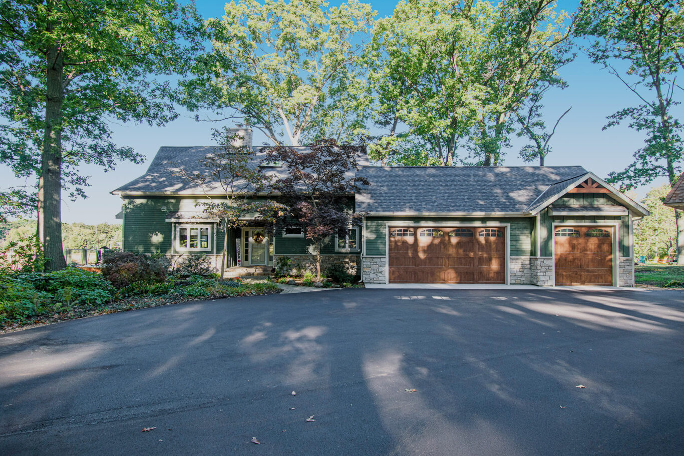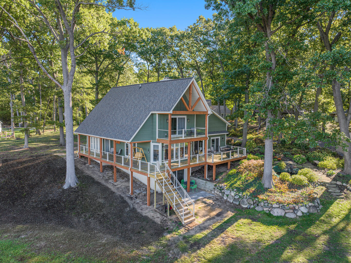 Our comprehensive exterior transformation included demolishing the existing garage, mansard shingles, and deck. We built a new three-stall garage, addressed the problematic roof, expanded the bedroom, and added a balcony for waterfront views. Fresh siding and an expanded deck completed the transformation. By building around the existing interior, we transformed their investment into a home that truly reflects their lifestyle and taste.