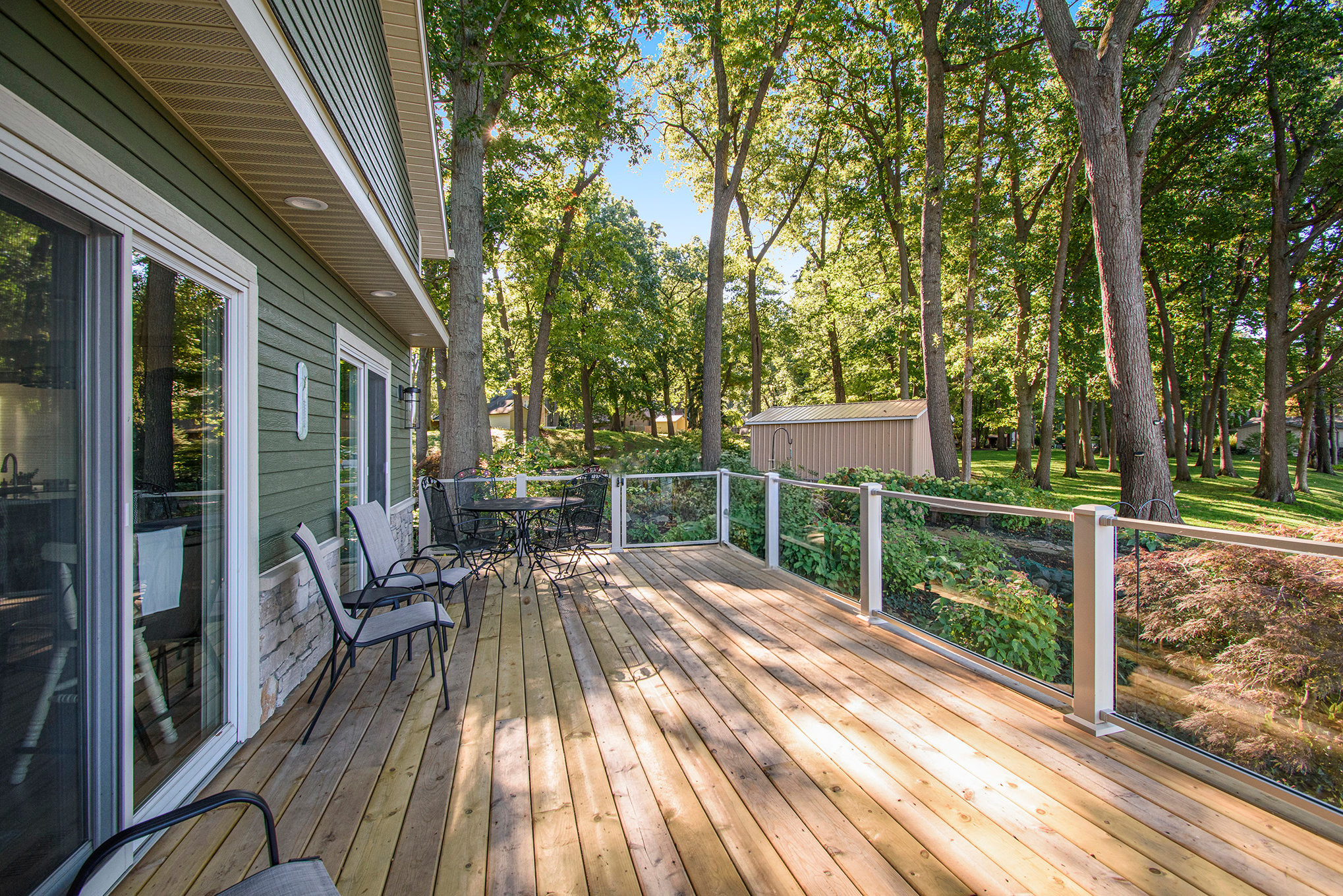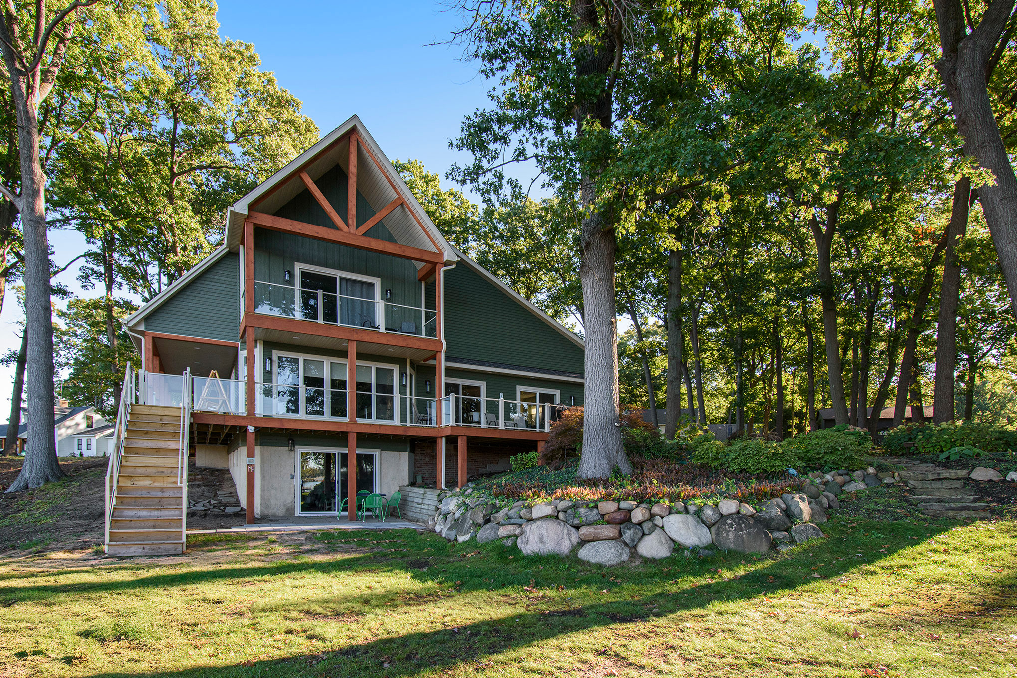 Our comprehensive exterior transformation included demolishing the existing garage, mansard shingles, and deck. We built a new three-stall garage, addressed the problematic roof, expanded the bedroom, and added a balcony for waterfront views. Fresh siding and an expanded deck completed the transformation. By building around the existing interior, we transformed their investment into a home that truly reflects their lifestyle and taste.